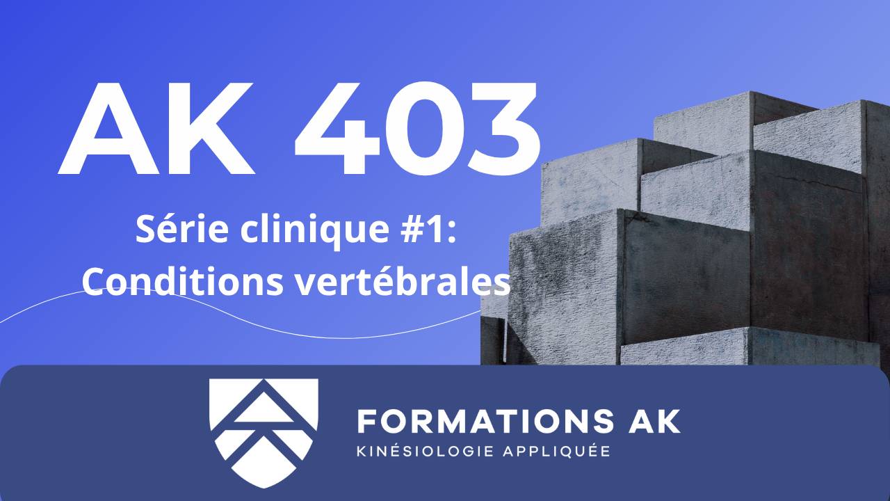Est-ce que vous vous sentez confiants en cliniques pour traiter les conditions vertébrales? Vous avez de la difficulté à intégrer les outils du AK dans vos traitements? Découvrez notre nouvelle série clinique! Un "GAME CHANGER" pour vous et vos patients!